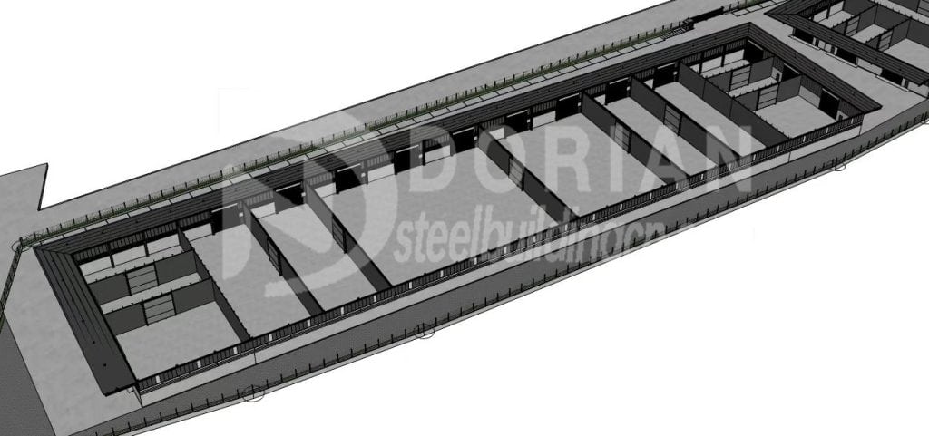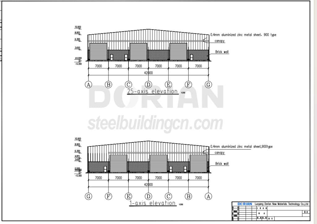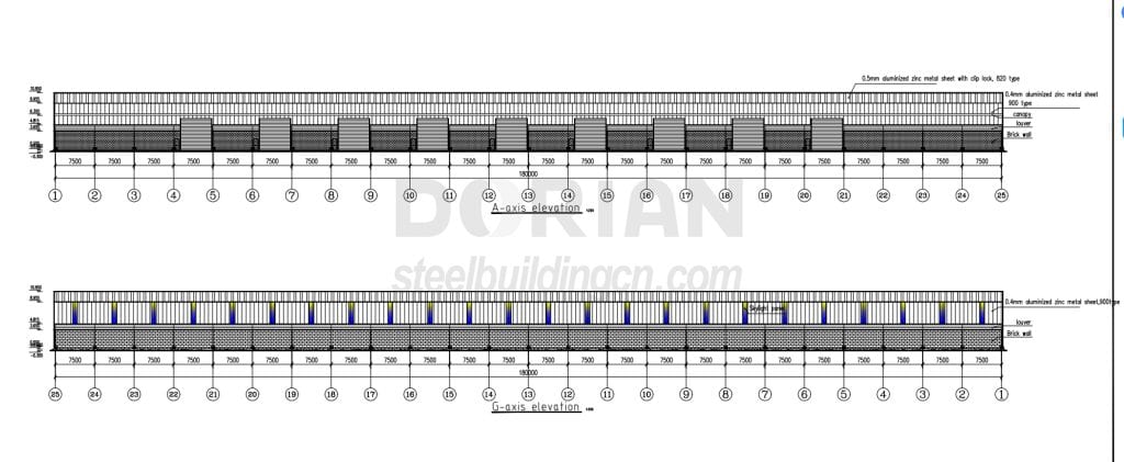 Dorian team learned that there are totally two projects will be built during the communication with the client, the first one need to be purchased this year and the second one will be ordered in 2026. The client has own 3D drawing and Dorian engineer make proposal drawing according to 3D plan. There are many partition walls inside are designed so that it will be easier for renting to local people.Dorian engineer layout designed wall with 3.65m high brick wall up from the ground + 1.15m high louver + metal sheet wall according to 3D drawing. Since client do not have insulation requirement for this project, so Dorian recommended 0.4mm metal sheet for roof and wall to save much cost.
